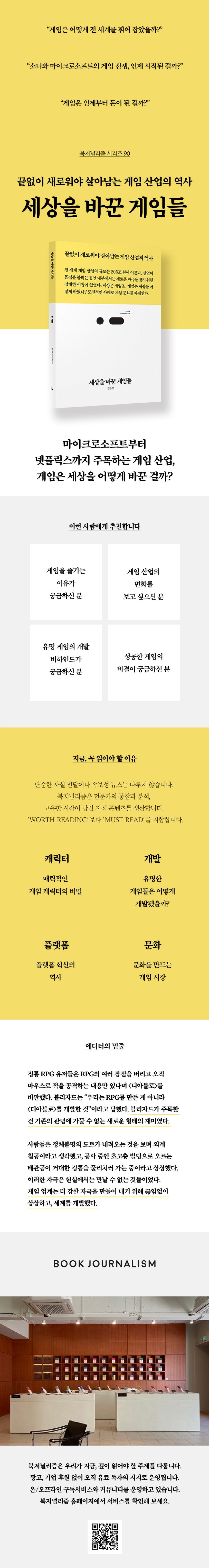 파란 고슴도치인 캐릭터 ‘소닉’은 어떻게 게임사 ‘세가’의 얼굴이 되었을까? 〈디아블로〉는 RPG 게임의 공식을 어떻게 바꿨을까? 마이크로소프트의 ‘게임 패스’는 플랫폼 경쟁의 시대를 어떻게 헤쳐나갔을까? 수많은 게임의 역사는 새로운 자극의 창조라는 공통의 결론으로 귀결한다. 때때로 자극은 새로운 캐릭터로, 화면의 움직임으로, 새로운 점수 시스템으로, 또 다른 플랫폼으로 나타나기도 했다. 끊임없이 새로움을 만들어 내야 했던 게임의 역사는 무엇이 새로운 것일지를 고민하는 사람들에게서 태어났다. 그들의 고민은 어떤 모양새였을까?