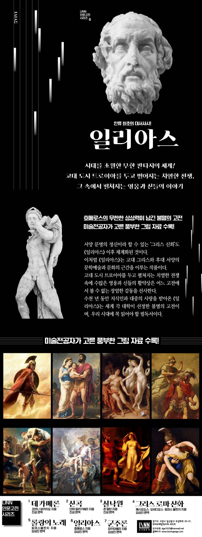 서양 문명의 정신이라 할 수 있는 ‘그리스 신화’도 《일리아스》 이후 체계화된 것이다. 이처럼 《일리아스》는 고대 그리스와 후대 서양의 문학예술과 문화의 근간을 이루는 작품이다. 고대 도시 트로이아를 두고 펼쳐지는 치열한 전쟁 속에 수많은 영웅과 신들의 활약상은 어느 고전에서 볼 수 없는 장엄한 감동을 선사한다.