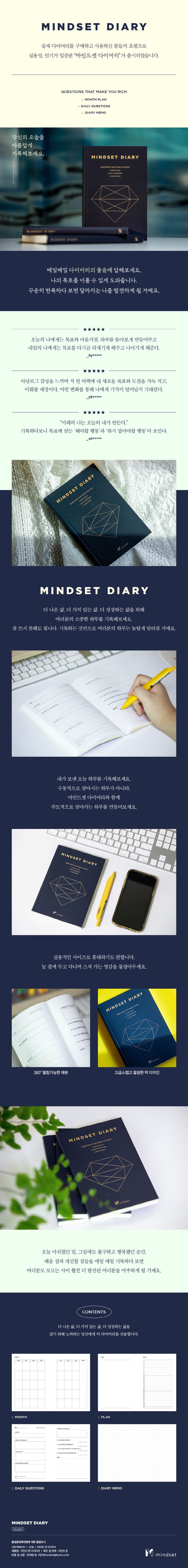 안녕하세요. 마인드셋 출판사입니다. 덕분에 출판사를 만든지 1년도 안 된 시점, 꽤나 많은 책을 출판했고, 또 좋은 저자분들과 함께 즐겁게 작업할 수 있었습니다. 그리고 그 중심에는 무엇보다 저희 출판사 도서를 구매해주시고 좋은 평을 남겨주신 여러분들이 계세요. 감사의 의미로 조금 특별한 다이어리를 기획했습니다. 여러분의 오늘 하루를 기록해보세요. 더 나은 삶, 더 가치 있는 삶, 더 성장하는 삶을 위한 여러분에게 이 다이어리를 선물합니다 :)