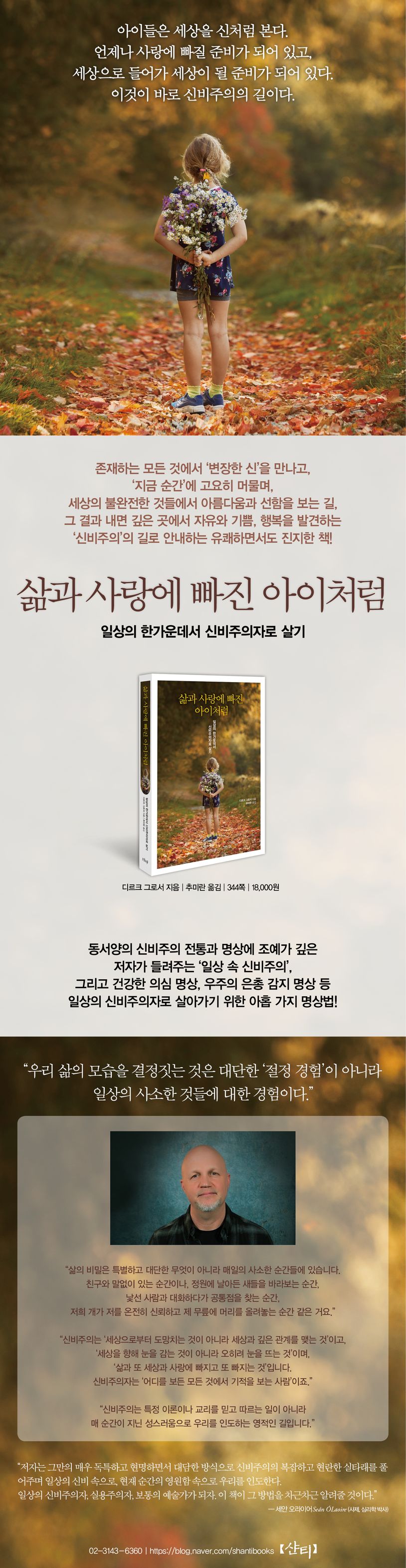 동서양의여러신비주의전통과명상에조예가깊어관련책들을쓰고강연을하고신비주의명상공동체에서활동하기도한저자는바로이러한관점에서신비주의에대한오해를바로잡고,기존의전통종교들과신비주의가어떻게다른지명확히하며,신비주의정신에따라‘지금여기의삶’을사는것이어떻게,왜우리삶을더행복하고풍요롭게만드는지,또신비주의자로서현실을살아가는데명상이어떻게도움이되며,어떤명상법들이좋은지까지,여러신비주의교사들이남긴말과행적은물론이고자신의일상속경험들도곁들이며친절하고유쾌하게풀어내고있다.