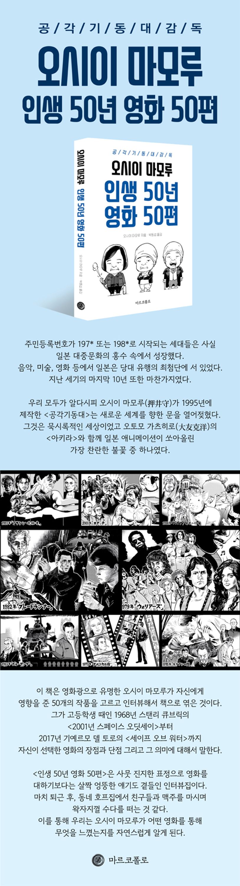 이책은‘올타임베스트(alltimebest)’와‘연간베스트텐(bestten)’과는다른‘일년에한편’이라는형식으로영화목록을만들었다.우선영화리스트를작성했는데,연간흥행수입상위10위는물론평균150편,많을때는450편중에서오시이감독이고르는형식이었다.과거의감동과당시의세평과는관계없이‘현재’의오시이마모루감독이‘논할만한가치’가있는가하는기준에서고른영화들이다.요컨대가장좋은베스트영화보다는자신의삶에어떤식으로건영향을준작품들을골랐다.이책을통해영화팬은물론중고등학생이아직보지않은영화를제대로알수있는기회가될것이다.오시이감독은늘‘영화를보고끝나는것’이아니라‘말함으로써가치를가진다’라고말해왔다.애니메이션감독으로서의오시이마모루의모습도엿보이고헐리우드키드로서의순수한고등학생으로서의모습도나온다.우리가영화를보는이유는다양하다.좋아하는배우가나오니까혹은영화평이좋았으니까.최근에는넷플릭스처럼검색하고시청한이력을참고로해서‘당신을위한추천영화’를표시해주기도한다.어떤이유라도좋다.보고끝나는것이아니라말하고생각할때야비로소영화는가치를갖는다.“재미있다”와“재미없다”를반복하는것으로는어떤만족도할수없다.영화읽기의풍부한가치가영화를말하는행위에깃들어있을것이다.