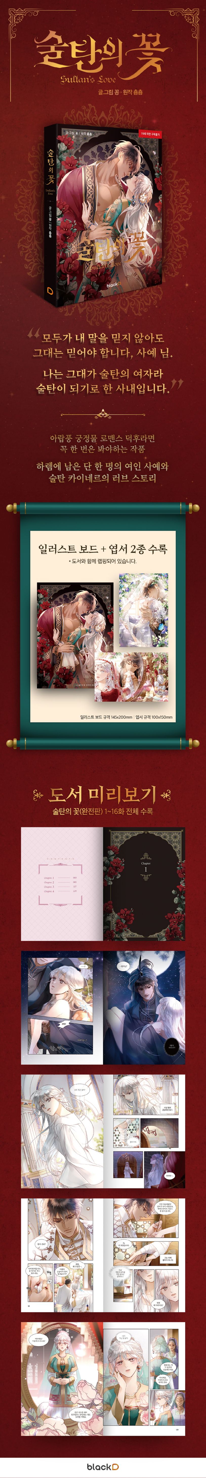 완결 후 1년이 넘는 시간이 지났지만, 여전히 베스트셀러 자리를 놓치지 않고 많은 독자들로부터 사랑받고 있는 작품 『술탄의 꽃』. 작품에 대한 평가 중 작화에 대한 호평이 높았던 만큼 이번 단행본에서는 표지 그림을 온전히 소장할 수 있는 일러스트 보드와 신규 일러스트로 제작된 엽서 2종을 함께 수록하여 소장성을 높였다.