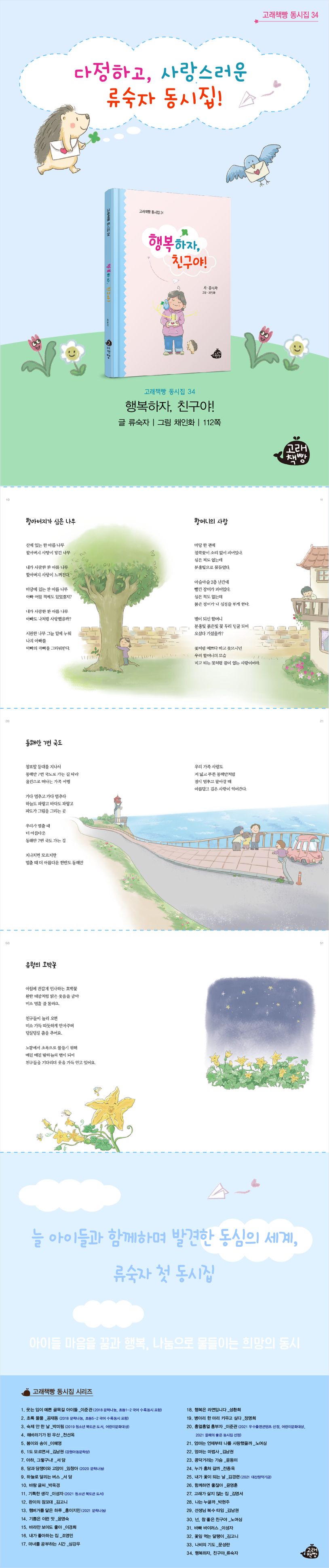 아이들은 동시를 읽으며 우정과 나눔의 마음을 키우고 행복과 희망의 꽃은 더욱 예쁘게 피우게 됩니다.