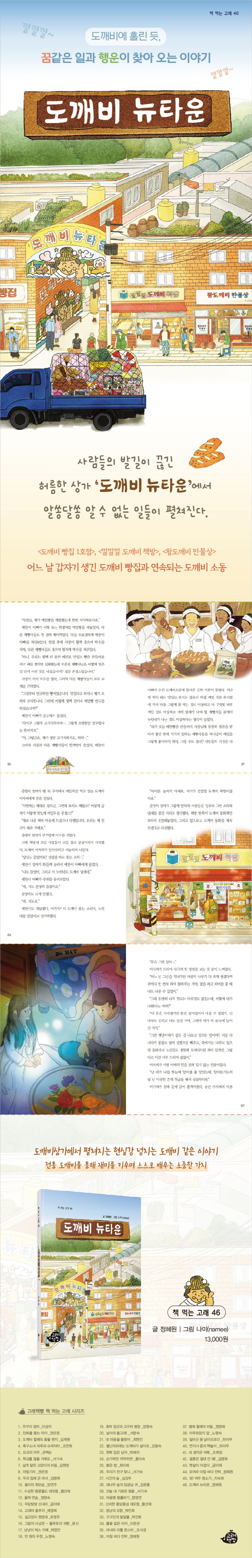 작품은 우리의 전통 도깨비를 소재로 상인들이 새로운 상가로 다 떠나 도깨비상가로 불리는 곳에서 펼쳐지는 현실감 넘치지만 도깨비 같은 이야기 세 편을 전해줍니다. 도깨비상가에 입주하여 똑같이 도깨비라는 상호를 쓴 빵 가게와 책방, 만물상에서 펼쳐지는 세 편의 이야기는 각각의 이야기면서도 전체가 하나로 이어집니다. 따로따로이면서 하나로 엮어지는 파노라마식 전개가 이야기의 몰입감을 더욱 키워줍니다. 특히 우리의 전통 도깨비가 상징하는 순진무구함과 부를 이야기 속에 녹여냄으로써 어린이들의 마음을 훈훈하게 하면서, 진짜 소중한 건 무엇인지를 스스로 찾아가게 합니다.
