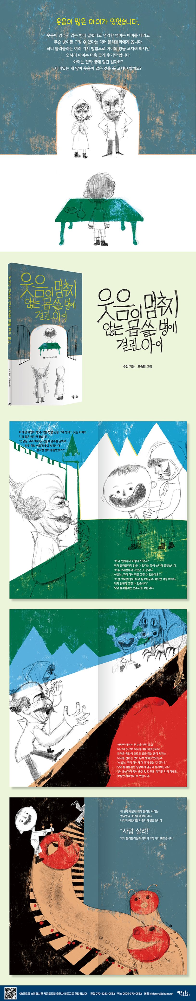 부모들은 아이를 키우면서 걱정이 많습니다. 아이가 남다른 행동을 하거나 어른이 보기에 이해되지 않는 행동을 하면 아이에게 어떤 문제가 있는 건 아닌지 걱정부터 하지요. 이 책에 나오는 아이의 엄마도 그렇습니다. 아이가 항상 크게 웃고 있는 것을 보고는 웃음이 멈추지 않는 병에 걸렸다고 걱정하며 의사에게 데려갑니다. 의사인 닥터 블라블라도 마찬가지입니다. 아이를 보고 심각한 병에 걸렸다고 생각하여 이런저런 치료법들을 이용하여 아이를 고치려고 합니다. 하지만 사실 아이는 병에 걸린 것이 아닙니다. 그저 재미있는 것이 많아서 항상 웃고 있었던 것이었죠. 그러니 닥터블라블라의 치료법은 소용이 없습니다. 엉터리 치료법이 계속 실패하는 것을 보며 엄마는 아이가 병에 걸린 것이 아니라 그저 재미있는 것이 많아서 웃는다는 것을 깨닫습니다. 그러고는 걱정을 버리고 아이와 함께 집으로 갑니다.