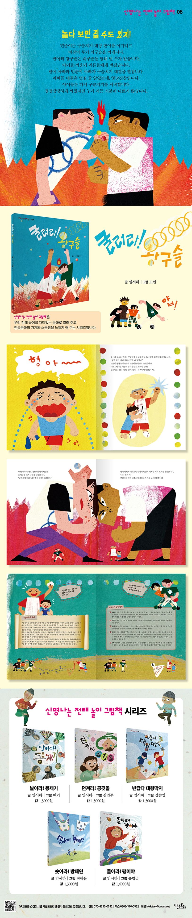 전 세계적으로 한국 문화에 대한 관심이 커지고 있는 요즘 미국, 러시아 출판사와 저작권 계약을 맺은 ‘신명나는 전래 놀이 그림책 시리즈’의 여섯 번째 책 《굴러라! 왕구슬》이 출간되었습니다. 《굴러라! 왕구슬》은 전래 놀이 중 하나인 구슬치기에 대한 이야기입니다. 구슬치기 대장 한이에게 민준이가 또다시 도전합니다. 이번에는 민준이에게 쇠구슬이 있으니 결과가 다를 겁니다. 아이들 싸움이 어른들 싸움으로 번지고, 아이들은 구슬치기를 하는 진짜 이유를 깨달아 갑니다.