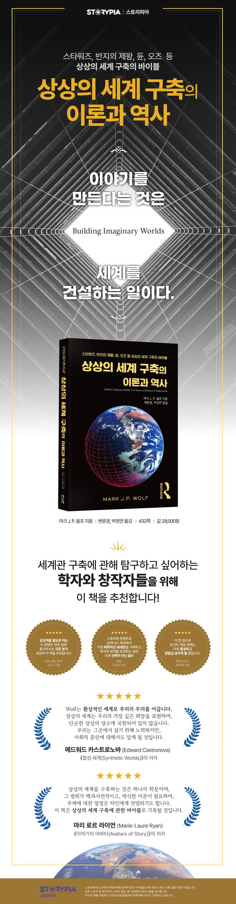 「상상의 세계 구축Building Imaginary Worlds」은 한국 독자들이 이해하기 쉽도록 이야기 세계관 구축의 이론과 역사라는 제목으로 출간했다. 세계관 구축에 관해 탐구하고 싶어 하는 학자와 창작자들을 위해 3천 년 전부터 1,400개 이상의 상상 세계에 걸쳐 이름, 제작자 및 처음 등장한 작품을 나열하기 위한 용어 해설집과 각 세계에 대한 타임라인도 책을 통해 만나볼 수 있다.