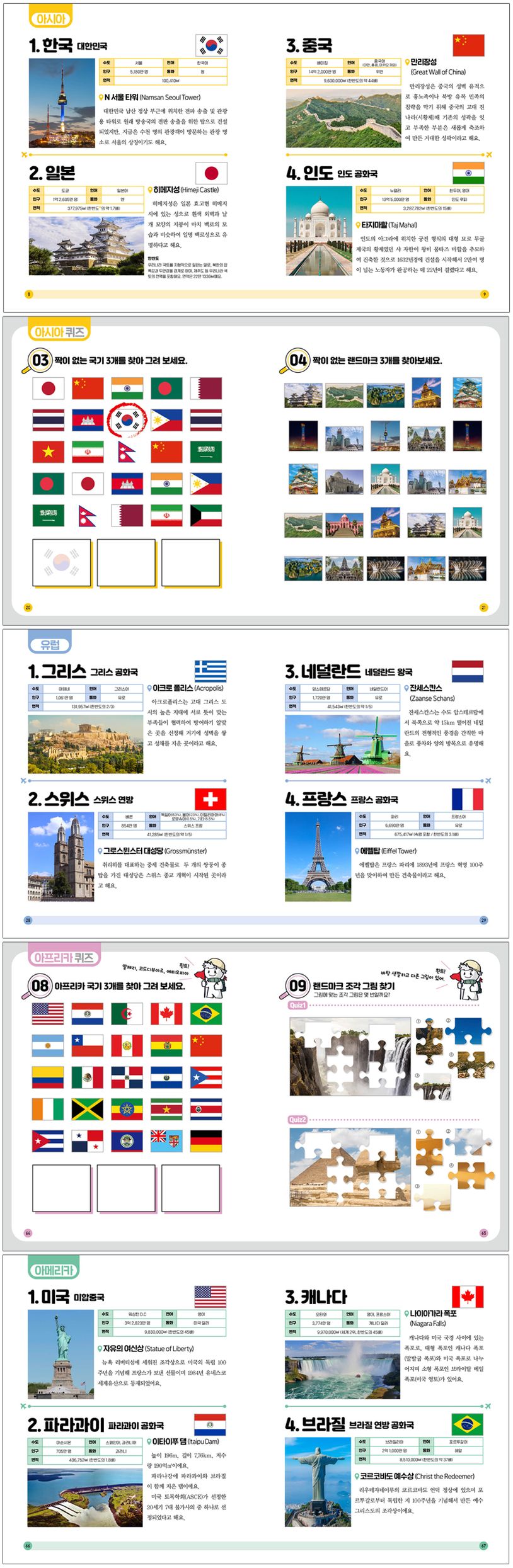 이 책은 단순히 국기를 소개하는 것을 넘어, 각 나라의 수도, 언어, 인구, 면적, 유명 랜드마크 등 다양한 정보를 담고 있어요. 총 80개의 퀴즈와 퍼즐을 통해 쉽고 즐겁게 여러 나라의 국기를 익힐 수 있습니다.