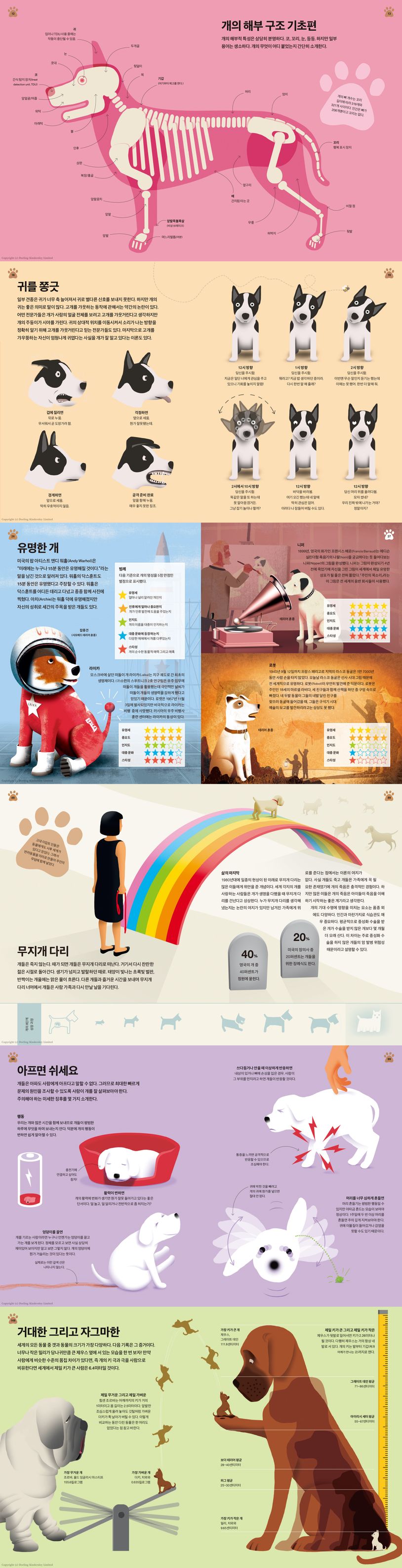 『개의 작동 원리』는 영국 출판 명가 돌링 킨더슬리(Dorling Kindersley, DK)에서 나온 DK 대백과사전 시리즈 『해양』, 『동물』, 『식물』, 인포그래픽 세상의 원리 시리즈 『인체 원리』, 『심리 원리』 등에 이어 강아지의 생리와 문화까지 재미있게 소개하는 새로운 일러스트레이션 시리즈로서, 더 케널 클럽(TKC), 웨스트민스터 케널 클럽을 비롯해 미국과 오스트레일리아, 포르투갈, 네덜란드, 일본, 한국 등 각국의 개 관련 협회로부터 자문과 자료 협조를 받았다. 《더 가디언》, 《리더스 다이제스트》 등과 작업해 온 일러스트레이터 데이비드 험프리스(Davie Humphries)가 그린 따뜻한 색감의 인포그래픽과 어우러진 이 책은 볼거리, 읽을거리가 가득하다.