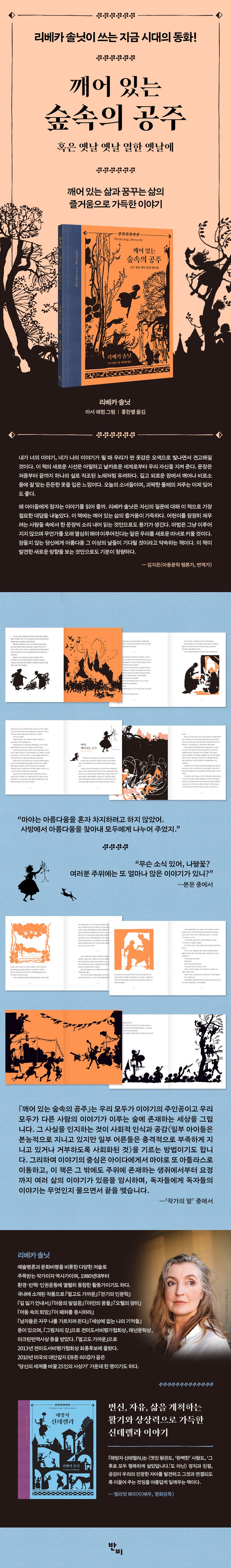 현시대 가장 주목받는 사상가 중 한 명인 리베카 솔닛의 두 번째 이야기책, 신선한 활력으로 가득한 『깨어 있는 숲속의 공주』가 출간되었다. 솔닛은 ‘잠자는 공주’의 수동성 때문에 동화 다시 쓰기의 대상에서, 그리고 페미니스트들의 재해석에서 외면되어 온 고전 동화를 활기 넘치는 모험의 이야기, 위기로 가득한 우리 시대에 필요한 삶과 예술의 윤리를 품은 이야기로 변신시킨다.