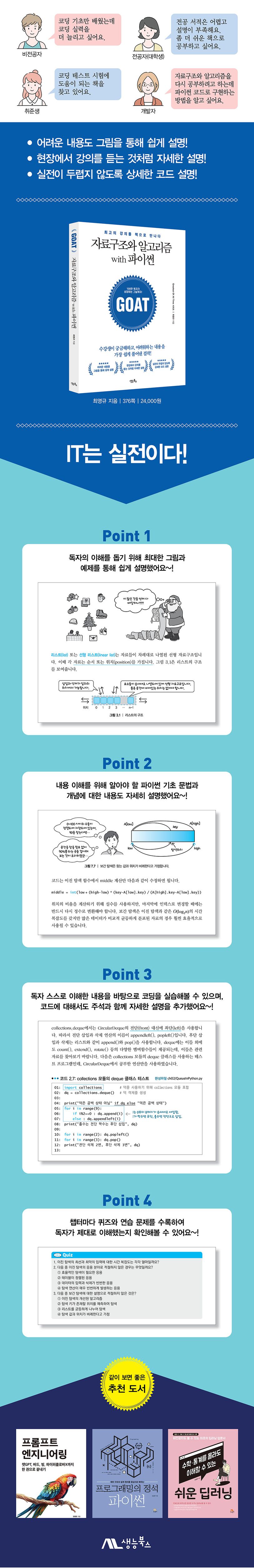 대부분 자료구조와 알고리즘을 다룬 책들은 전공자를 대상으로 집필되어 코딩을 배운지 얼마 안 되었거나 코딩 용어에 익숙하지 않다면 이해하기 어려울 수 있다. 이 책은 컴퓨터공학을 가르치는 저자가 오랜 교육경험을 통해 그림이나 쉬운 설명을 통해 비전공자를 포함하여 누구나 쉽게 이해할 수 있도록 집필하였다. 다양한 자료구조와 알고리즘을 익힐 수 있을 뿐 아니라 컴퓨팅 사고력, 즉 문제해결력과 논리적 사고력까지 기를 수 있다.