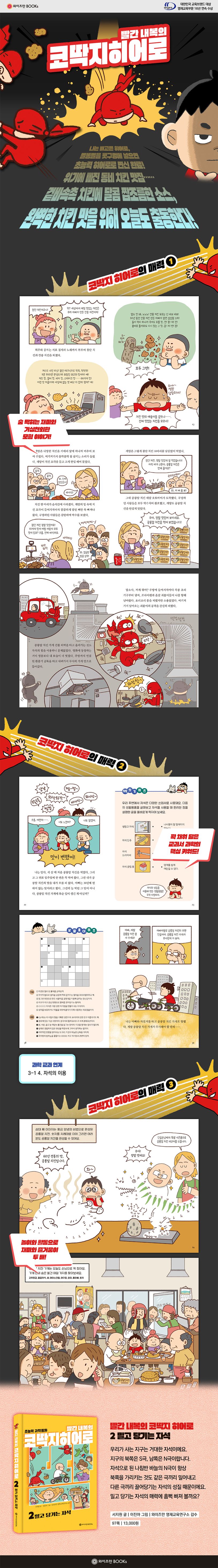 ‘빨간 내복의 초능력자’ 나유식이 작지만 더욱 강해진 모습으로 돌아왔다. 교과서 속 과학 원리에 빵빵 터지는 재미까지 더해진 〈빨간 내복의 코딱지 히어로〉 시리즈는 과학을 처음 접하는 초등학교 저학년 아이들을 대상으로 기획된 과학 동화 시리즈이다. 과학 원리를 깨달을 때마다 초능력자가 되어 활약하며 어린이 독자들에게 큰 즐거움을 선사했던 우리의 빨간 내복, 나유식이 드디어 새 코믹북 시리즈인 〈빨간 내복의 코딱지 히어로〉 시리즈로 어린이 독자들을 다시 찾아왔다. 전편보다 풍성해진 일러스트로 흥미진진한 이야기를 담았으며, 다양한 퀴즈와 놀이 활동으로 만나는 교과서 속 과학 개념까지 쉽고 재미있게 꽉 채웠다. 한 권을 읽고 나면 곧장 다음 권이 기다려지는, 책 읽기에 재미를 붙이기에도 더없이 좋은 책이 될 것이다.