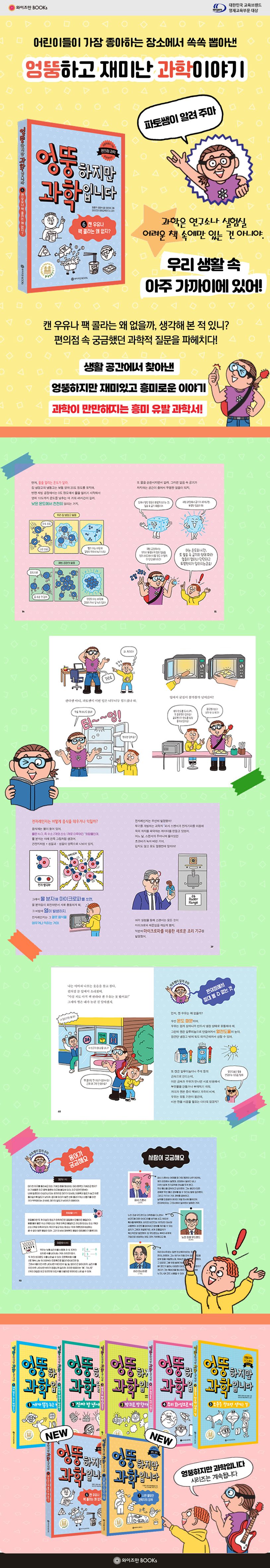 과학은 연구소이나 실험실, 어려운 책 속, 아니면 먼 미래에만 있는 게 아니라 생활 속 우리 곁 아주 가까이에 있다는 얘기, 참 많이 듣지만 쉽게 와 닿지 않는다. 어려운 과학 용어나 법칙, 공식이라도 마주하면 머리부터 아파온다. 특히 아이들은 과학을 교과서로 배우고 시험까지 볼라치면 더더욱 멀고 어렵게만 여긴다. 이런 아이들에게 과학은 쉽고 재미있는 것이라고 가르쳐 줄 게 아니라 직접 보고 느끼게 할 수 있는 방법이 없을까 하는 고민에서 와이즈만북스의 《엉뚱하지만 과학입니다》 시리즈가 출발했다. ‘아주 엉뚱하고 기발한 이야기를 읽었을 뿐인데 어느새 과학을 마주하고 이해하고 생활에 적용까지 하고 있네!’ 이것이 《엉뚱하지만 과학입니다》 시리즈가 지향하는 어린이를 위한 과학책의 방향이다.
