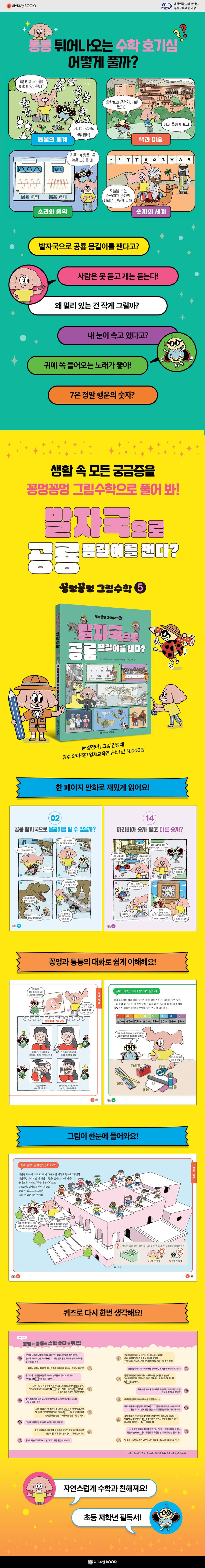 이럴 때마다 답답한 우리를 위해 쉽고 재미있게 해답을 찾아 주는 친구가 생겼다. 《꽁멍꽁멍 그림수학》에 나오는, 수학으로 문제를 해결하는 탐정이 되고 싶은 강아지 꽁멍과 그림자처럼 따라다니며 질문하기를 제일 좋아하는 귀여운 사고뭉치 통통이 바로 그 주인공이다! 통통의 궁금증과 호기심, 꽁멍의 추리와 탐구 과정을 따라가다 보면 저절로 궁금증이 해소되며 수학과 친해지게 될 것이다.
