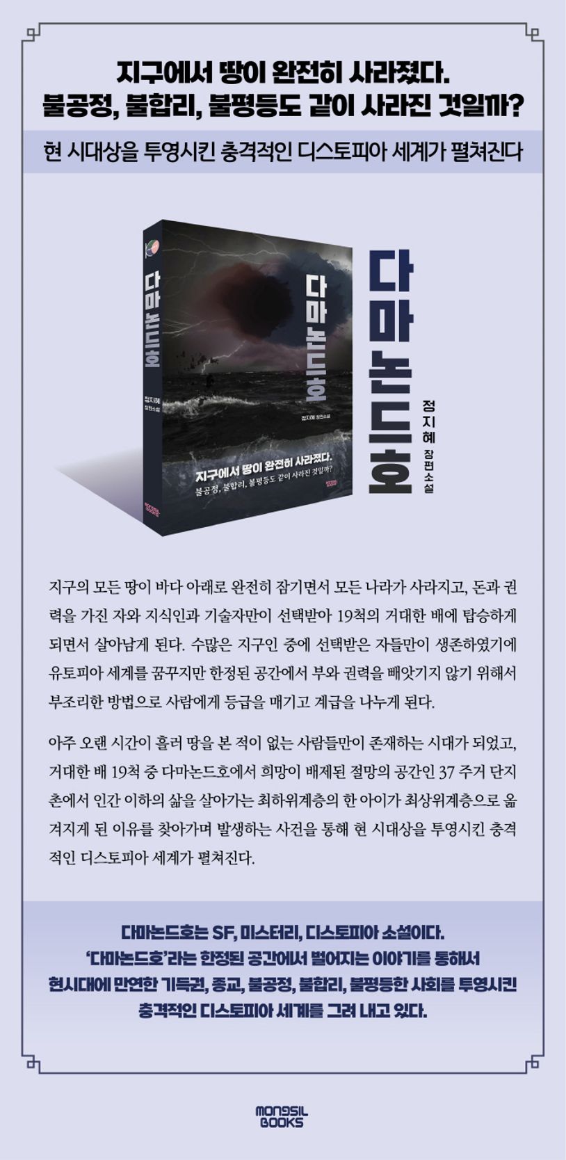 〈다마논드호〉는 지구의 모든 땅이 바다 아래로 완전히 잠기면서 모든 나라가 사라지고, 돈과 권력을 가진 자와 지식인과 기술자만이 선택받아 19척의 거대한 배에 탑승하게 되면서 살아남게 된다. 수많은 지구인 중에 선택받은 자들만이 생존하였기에 유토피아 세계를 꿈꾸지만 한정된 공간에서 부와 권력을 빼앗기지 않기 위해서 부조리한 방법으로 사람에게 등급을 매기고 계급을 나누게 된다.