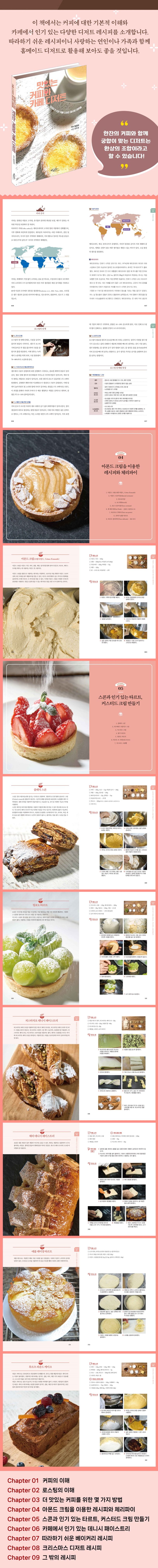 이 책은 커피에 대한 기본적안 이해와 함께 함께 먹으면 좋을 카페 수준의 디저트 레시피를 소개합니다. 따라하기 쉬운 레시피이니 홈메이드 디저트로 활용해보아도 좋습니다.