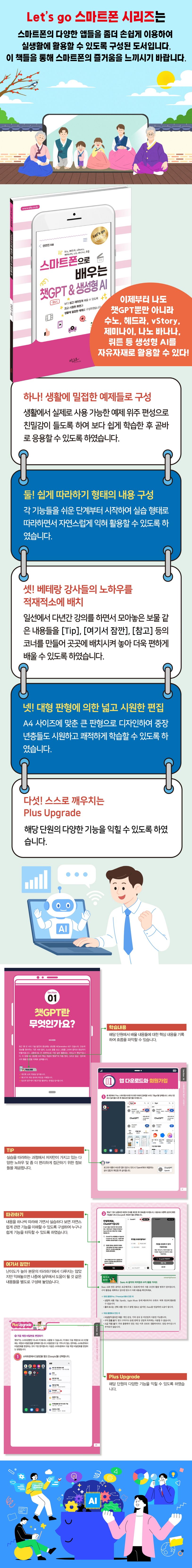 이책의특징1.스마트폰만있으면누구나시작할수있는초간단실전가이드:복잡한PC프로그램없이챗GPT앱설치부터설정,대화,음성활용,고급기능까지단계별안내한다.2.최신생성형AI도구총망라:챗GPT뿐만아니라다음과같은최신AI서비스를스마트폰으로활용하는법을상세히설명한다.3.실생활에업무콘텐츠제작에바로써먹는예제가가득:이미지만들기,음악만들기,립싱크영상만들기,영어연습,업무문서자동화등실제로쓸모있는사례중심으로구성했다.