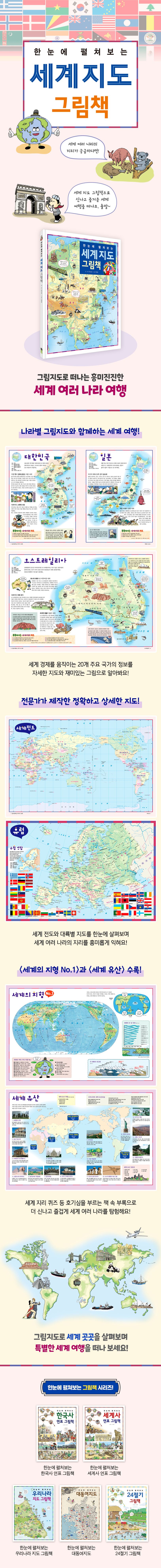 《한눈에 펼쳐보는 세계 지도 그림책》은 세계 경제를 움직이는 20개 주요 국가에 대한 정보를 자세한 지도와 재미있는 그림으로 엮었습니다. 각 나라의 주요한 지리 정보를 나라별 지도 위에 그림으로 나타내고, 국기를 비롯한 인구와 면적, 자연환경, 경제 등을 주제로 서술했습니다. 세계 전도와 대륙별 지도를 수록해 세계 여러 나라의 지리도 한눈에 살펴볼 수 있습니다. 〈똑똑해지는 세계 지리 퀴즈〉와 〈세계의 지형 No.1〉, 〈세계 유산〉을 통해 더 쉽고 즐겁게 세계 여러 나라를 탐험할 수 있습니다.