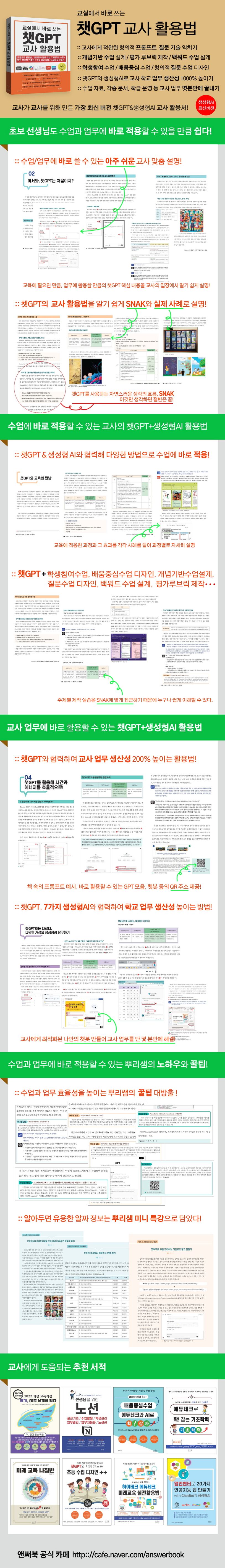 2022개정교육과정에맞춰챗GPT&생성형AI를수업과학교업무에바로적용할수있는실전사례중심비법서이다.