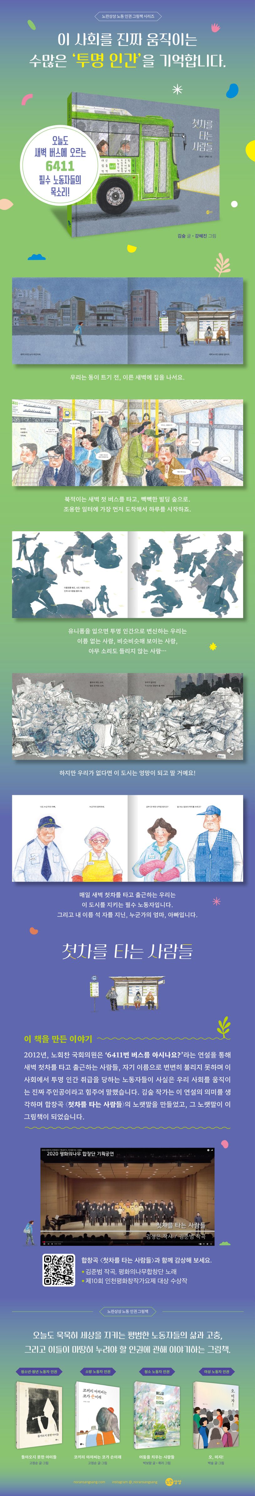 매일 아침, 해도 뜨지 않은 새벽에 버스를 타고 출근하는 사람들이 있어요. 뜻밖에도 새벽 첫차에는 사람들이 가득 차 있고, 사람들은 피로에 찌들어 있으면서도 어쩐지 서로 반기는 얼굴입니다. 발 디딜 틈 없는 만원 버스는 마침내 빽빽한 빌딩 숲으로 진입합니다.