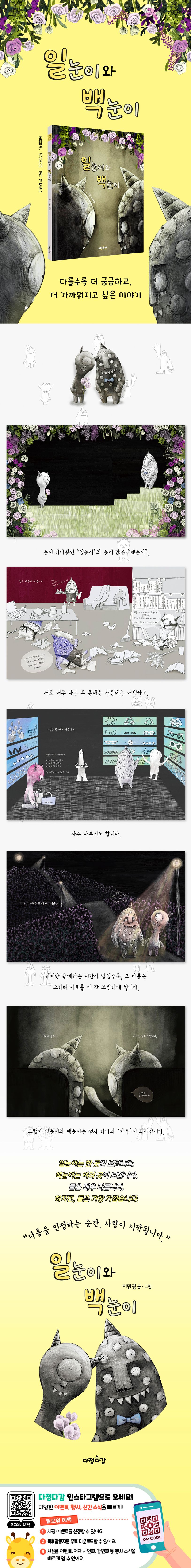 『일눈이와 백눈이』는 부부, 친구, 혹은 우리가 맺고 살아가는 모든 관계 속 서로 다른 두 사람이 만나 조화를 이루어가는 과정을 따뜻하게 그려낸 그림책입니다. 다름을 인정하는 것이 곧 사랑의 시작이라는 진심이, 아이는 물론 어른의 마음에도 포근하게 스며듭니다.