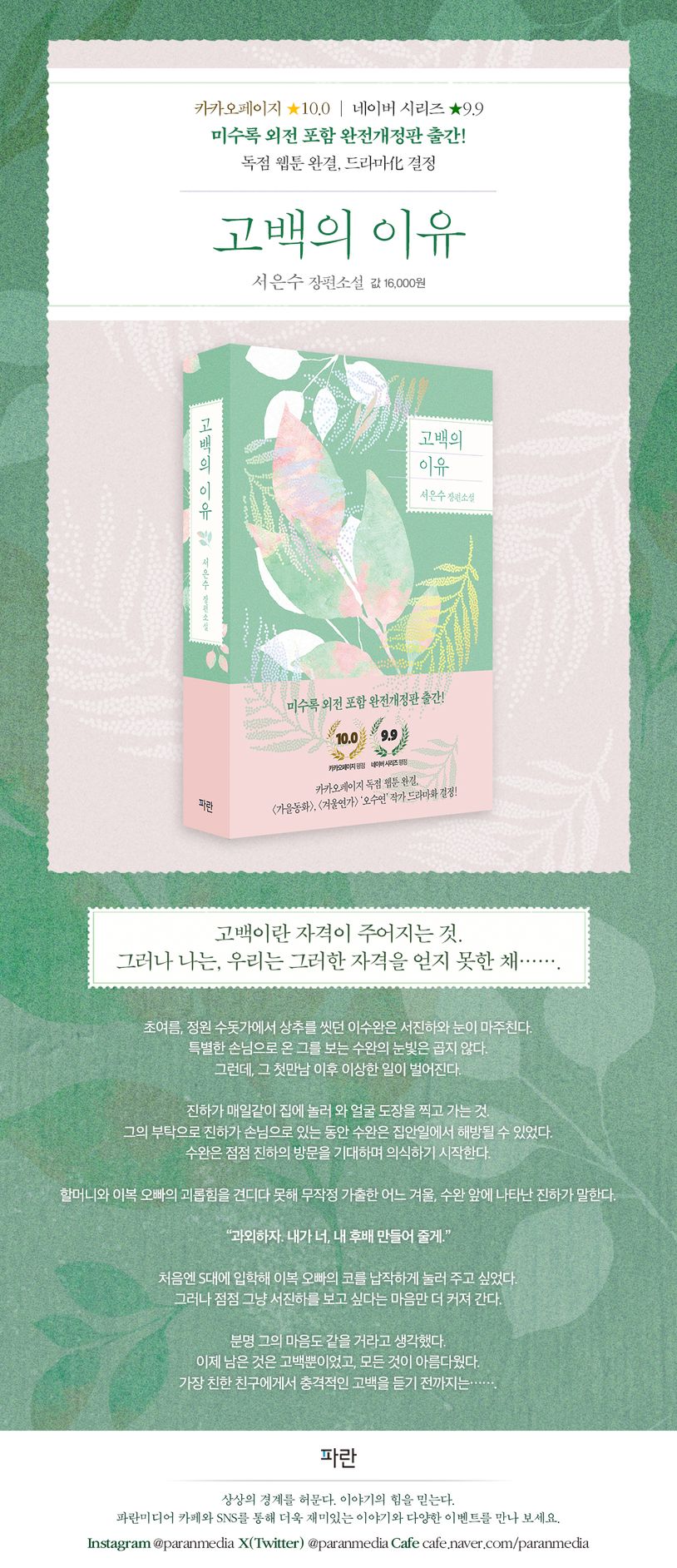 고백의 이유 (서은수 장편소설 | 개정판)