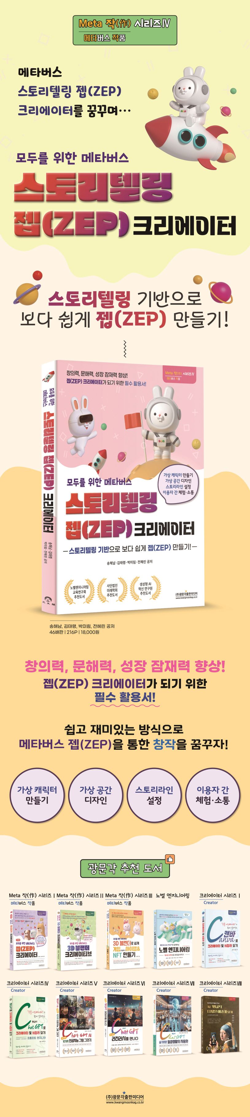 디지털 기술의 발전과 함께 우리는 새로운 시대를 맞이하고 있습니다. 이제는 단순히 인터넷에서 정보를 찾고 소통하는 것을 넘어서, 가상 공간에서 자신만의 세계를 창조하고 다른 사람들과 교류할 수 있는 메타버스의 시대가 열리고 있습니다. 이 책, 스토리텔링 ZEP은 여러분이 그 새로운 세상의 주인공이 될 수 있도록 돕기 위해 준비되었습니다.