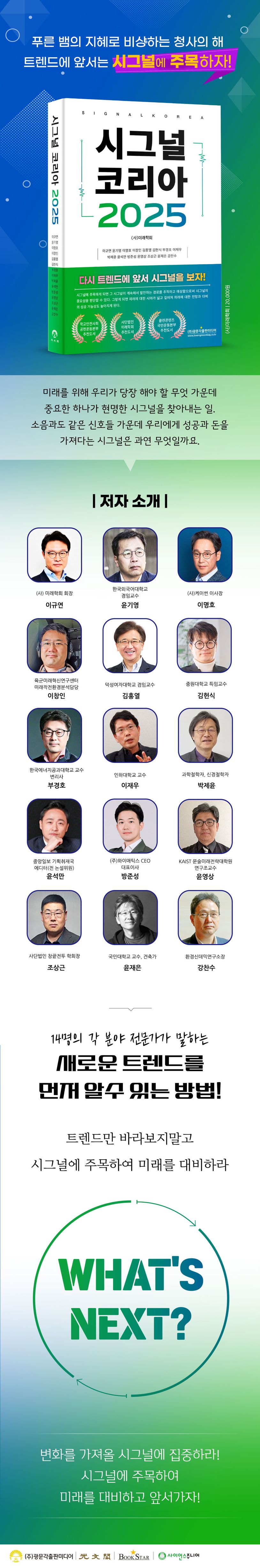 인도의 지도자인 간디가 남긴 말입니다. 미래를 위해 우리가 당장 해야 할 무엇 가운데 중요한 하나가 현명한 시그널(signal)을 찾아내는 일이라고 봅니다. 우리는 다양하고 혼란스러운 신호에 둘러싸여 살아갑니다. 때로는 소음과도 같은 신호들 가운데 우리에게 성공과 돈을 가져다주는 시그널은 과연 무엇일까요. 2025 시그널 코리아를 지금부터 시작합니다.