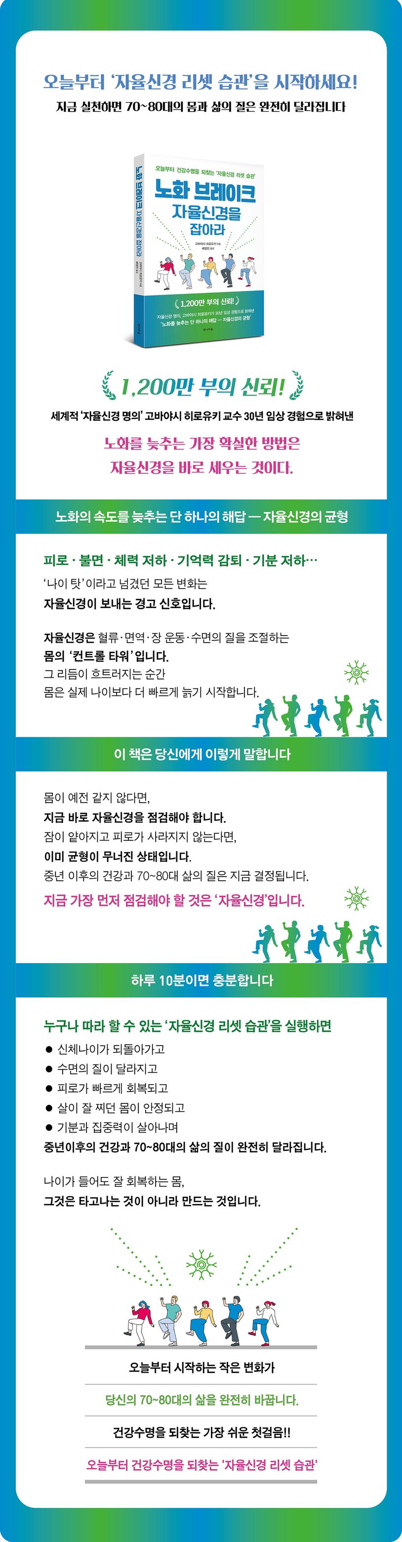 《노화 브레이크 자율신경을 잡아라》는 누적 판매 1,200만 부 베스트셀러 저자이자 자율신경 명의인 고바야시 히로유키 교수가