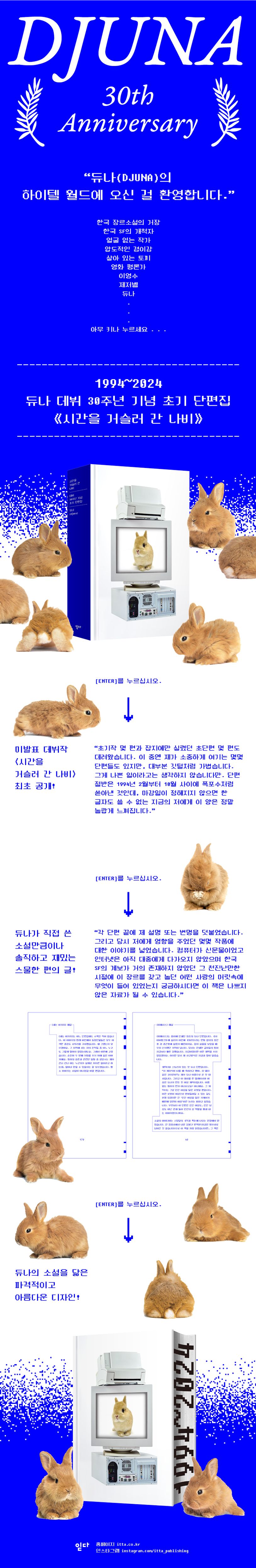 장르소설 독자라면 누구나 반길 만한 이름이자, 나아가 한국 문학을 말할 때 빼놓을 수 없는 작가가 된 ‘듀나의 시작’을 기념하고, ‘듀나 월드’를 즐겨온 독자들에게 뜻깊은 선물을 주고자, 읻다 출판사에서는 작가의 초기 단편 21편과 작가가 직접 쓴 21편의 코멘터리를 묶어 ‘하이텔 버전 특별판’인 《시간을 거슬러 간 나비》를 만들었다. 《시간을 거슬러 간 나비》는 작가의 데뷔 일인 2월 11일에 맞추어 출간되었다.
