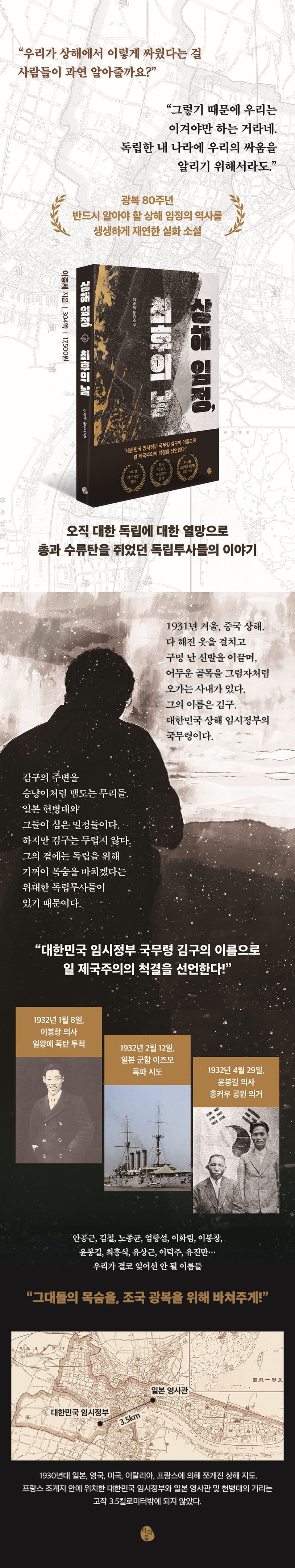 1932년 상해 임시 정부의 마지막 투쟁을 다룬 실화 기반 역사 소설