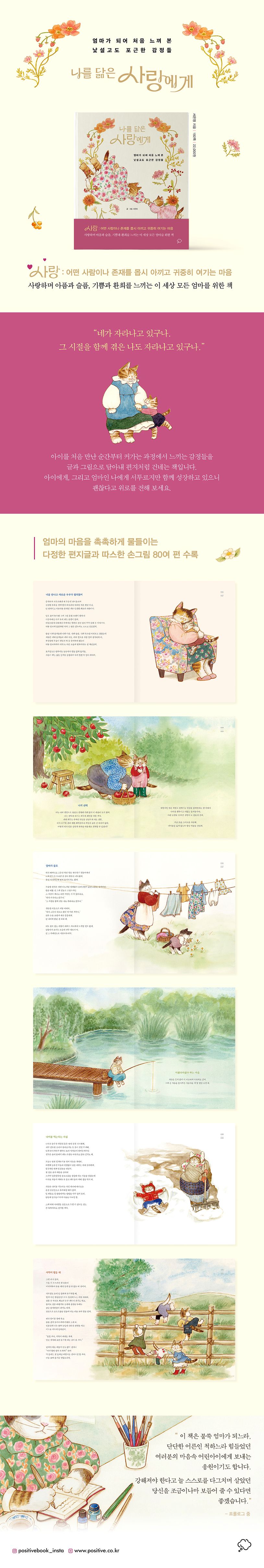 ≪나를 닮은 사랑에게≫는 한 아이의 엄마이자 아날로그 손그림으로 국내외에서 큰 사랑을 받아온 그림책 작가 서은영의 신작입니다. 엄마가 되어 처음 느껴 본 낯설고도 포근한 감정을 솔직하고 담담하게 고백하고 있는 그림 에세이로, 아이를 향한 다짐을 담아 편지글을 쓰고 따스한 수채화로 고양이 가족을 그려내 책을 작업했습니다.