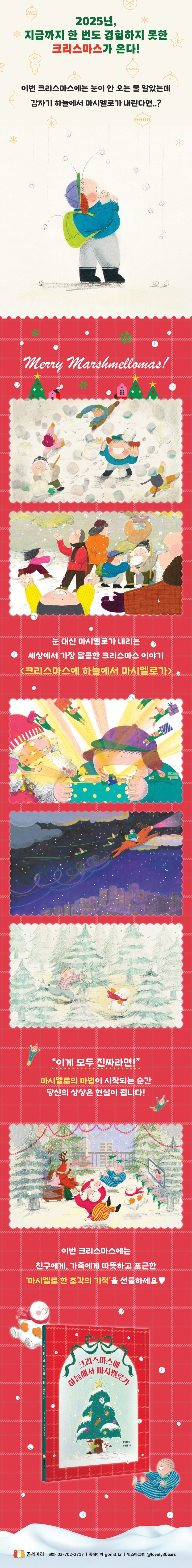 눈 대신 마시멜로가 펑펑 내리는 크리스마스 날이 온다면 어떨까요? 『크리스마스에 하늘에서 마시멜로가』는 바로 그 달콤한 상상에서 시작됩니다.