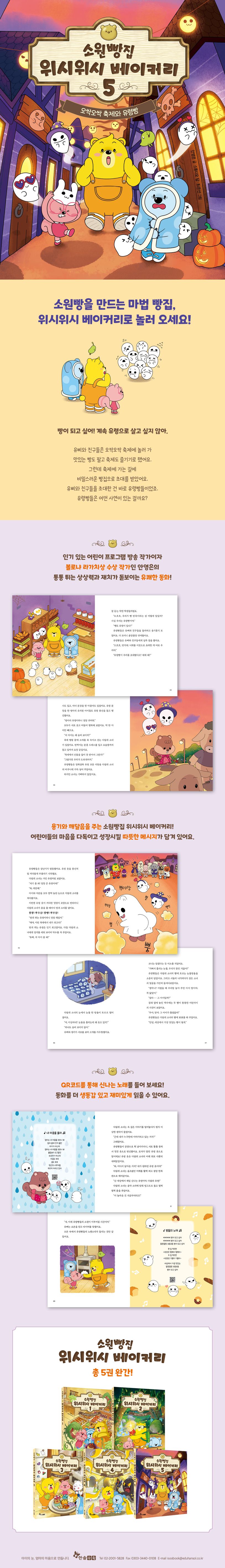 『소원빵집 위시위시 베이커리』 시리즈는 상상력이 돋보이는 재미있는 이야기 속에 아이들의 마음을 건강하고 바르게 성장시킬 교훈을 담고 있어요. 책에 실린 QR코드를 통해 노래를 들으며 동화를 읽으면 더 큰 재미를 느낄 수 있답니다. 『소원빵집 위시위시 베이커리 5 : 오싹오싹 축제와 유령빵』은 여러 가지 ‘감정’에 대해 생각해 볼 수 있는 이야기예요.