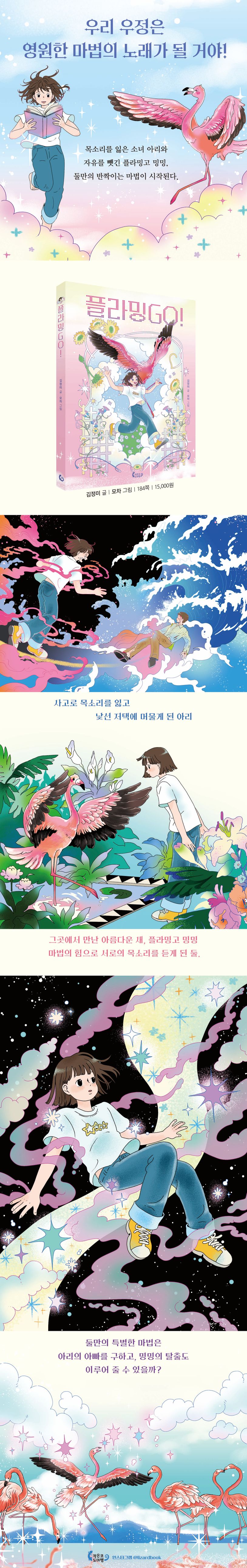 어린이는 모두 자기 안에 숨겨진 마법을 품고 살아간다. 그것은 어쩌면 친구와의 우정일 수도, 이루고 싶은 꿈일 수도, 삶을 사랑하는 마음일 수도 있다. 진정한 마음속 마법은 쉽사리 손에 잡히지 않고 눈에 보이지도 않는다. 아리처럼 내 안에 빛나는 마법이 있음을 믿어야 진짜 마법이 내게 다가올 수 있다. 《플라밍Go!》는 용기 내어 한 걸음 나아가려는 모든 어린이를 위한 반짝이는 마법 같은 동화이다.