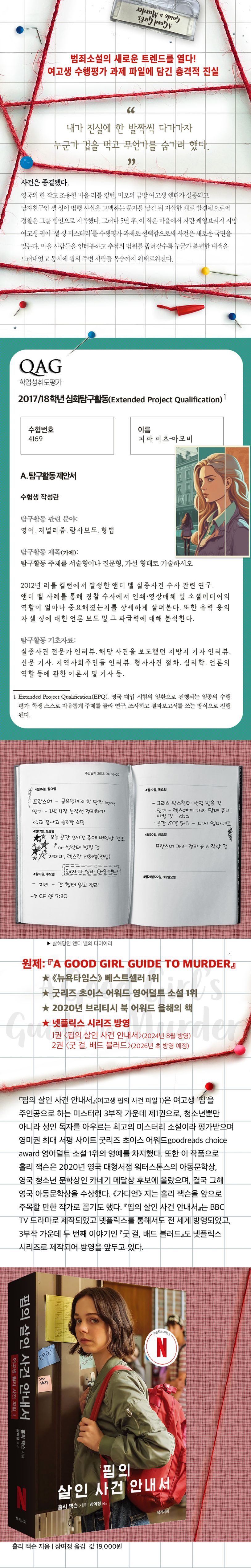 『핍의 살인 사건 안내서』는 여고생 ‘핍’을 주인공으로 하는 미스터리 3부작 가운데 제1권으로, 청소년뿐만 아니라 성인 독자를 아우르는 최고의 미스터리 소설이라 평가받으며 영미권 최대 서평 사이트 굿리즈 초이스 어워드goodreads choice award 영어덜트 소설 1위의 영예를 차지했다. 또한 이 작품으로 홀리 잭슨은 2020년 영국 대형서점 워터스톤스의 아동문학상, 영국 청소년 문학상인 카네기 메달상 후보에 올랐으며, 결국 그해 영국 아동문학상을 수상했다. 《가디언》 지는 홀리 잭슨을 앞으로 주목할 만한 작가로 꼽기도 했다. 『핍의 살인 사건 안내서A Good Girl’s Guide to Murder』는 넷플릭스 시리즈로 제작 방영되었으며 시리즈의 두 번째 이야기인 『굿 걸, 배드 블러드Good Girl, Bad Blood』 역시 넷플릭스를 통해 제작되어 방영을 앞두고 있다.