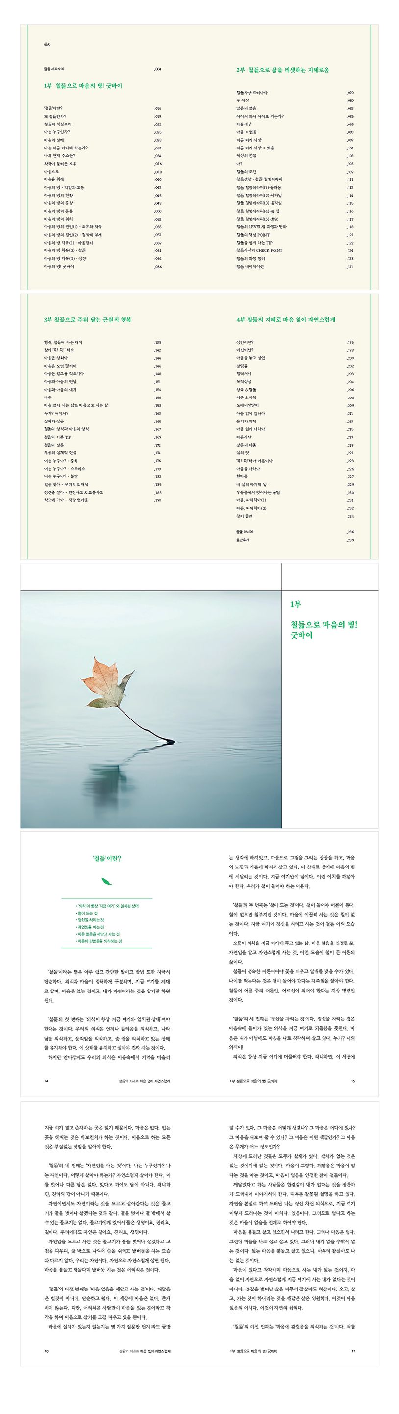 하지만 ‘마음’의 본질과 ‘마음’을 버리지 않는 이상 ‘마음의 병’에서 벗어날 수 없는 이유에 대해 예리하게 분석하고, ‘들려옴, 나타남, 움직임, 숨 쉼, 호명’의 다섯 가지 간단한 방법을 통해 우리를 괴롭게 하는 실체 없는 것들로부터 벗어나 온전히 ‘지금 여기’에 존재하며 자연과 하나 되는 행복을 느낄 수 있게 해 주는 이 책은 우리가 이제까지 당연하게 여겨 왔던 ‘마음’의 존재에 대해 의심을 품고, 마음이 만들어내는 집착과 갈등에서 벗어나 진정한 평화와 만족이 있는 삶이란 무엇인지 깊이 생각해볼 수 있게 도울 것이다.