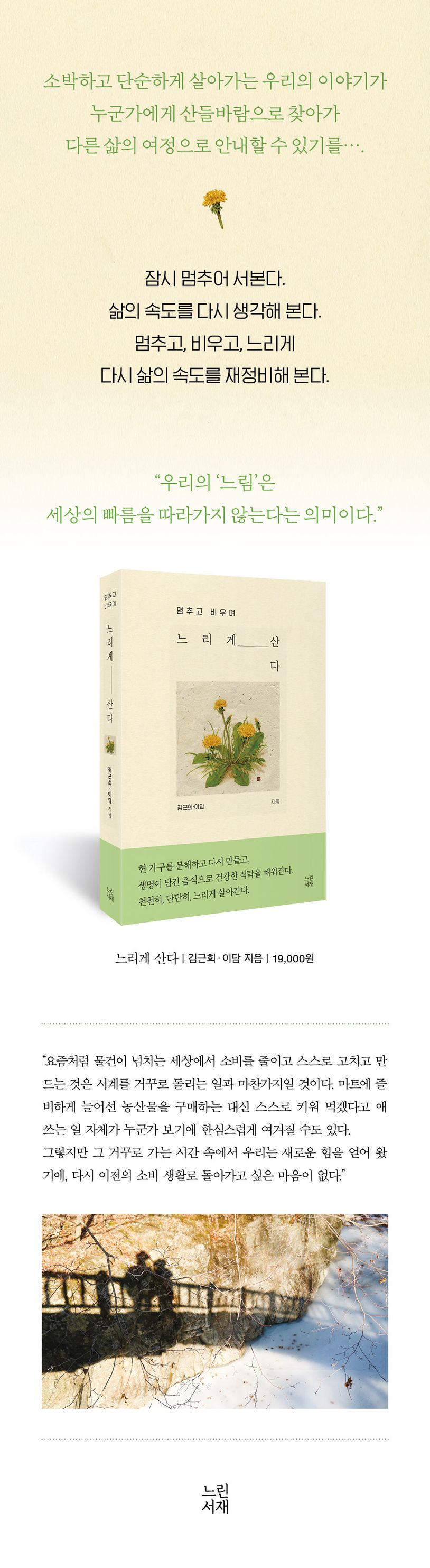 느리게 사는 삶, 느린 소비, 스스로 돌보는 삶에 관한 이야기를 담았습니다.