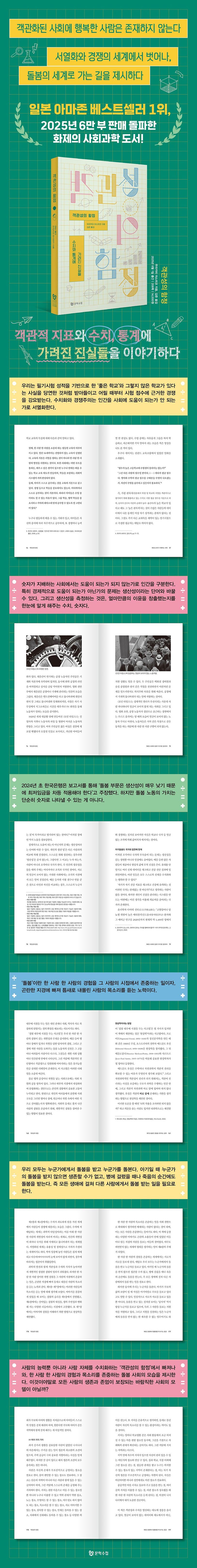 들어가며제1장객관성이진리가된시대 1.객관성의탄생 2.측정과논리구조제2장사회와마음의객관화 1.‘사물’화되는사회 2.마음의객관화 3.지금까지의논의를돌아보며제3장숫자가지배하는세계 1.우리에게친근한숫자와의경쟁 2.통계가갖는힘제4장사회에도움이되기를강요하다 1.경제적으로도움이되는일이가치가되는사회 2.우생사상의흐름제5장경험의언어화 1.이야기와경험 2.‘생생한경험’이란무엇인가제6장우연과리듬-경험의시간에대하여 1.우연을받아들이다 2.섞이지않는리듬 3.변화의다이너미즘제7장생생한경험을포착하는철학 1.경험내부에서의시점 2.현상학의윤리제8장경쟁에서탈출했을때보이는풍경후기참고문헌