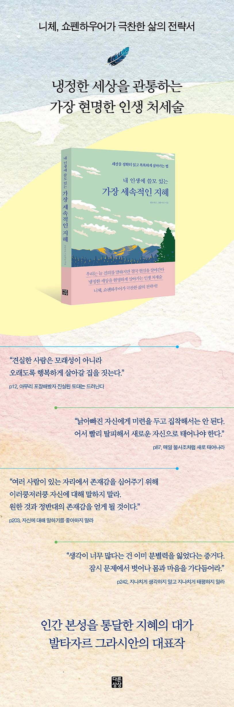 지금보다 한 단계 더 성장하고 싶다면, 단단한 자기 자신으로 살아가고 싶다면 그라시안의 문장들을 읽어보라. 자기 계발을 넘어 자기 경영으로 가는 지혜의 지도가 되어줄 것이다.