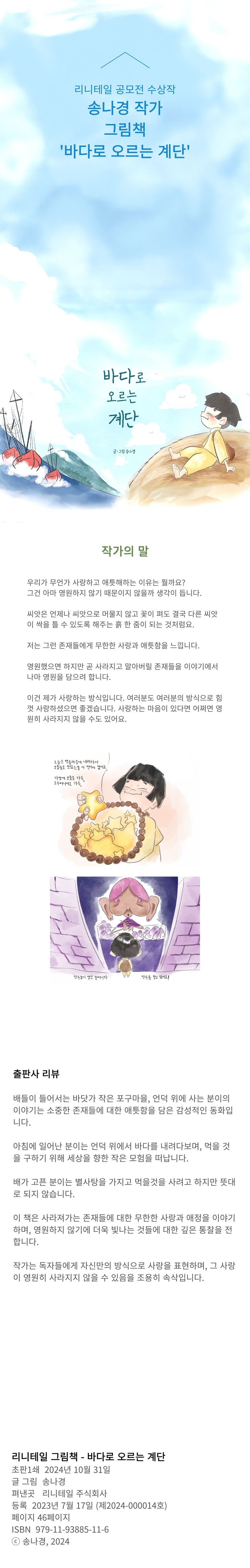 리니테일 출판 공개 공모전 수상작, 송나경 작가의 그림책 **『바다로 오르는 계단』**이 출간되었습니다.