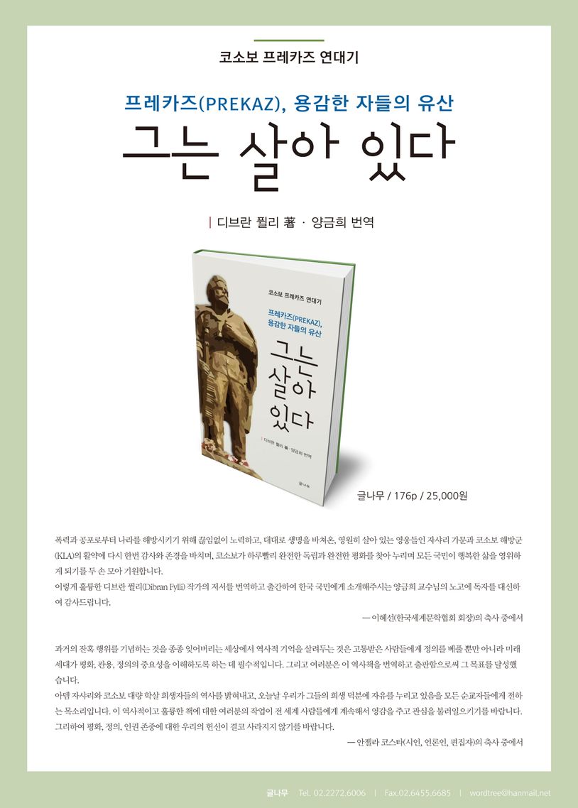 축사코소보해방군의영웅적인활약에존경을…이혜선(한국세계문학협회회장)먼저《프레카즈(PREKAZ),용감한자들의유산-그는살아있다》의한국어판출간을축하드립니다.조국코소보의독립을위해대대로목숨을바쳐투쟁하고희생을바친프레카즈(PREKAZ)의자샤리가문과코소보해방군의영웅적인활약에존경과애도를바칩니다.우리대한민국도이웃국가의침략으로36년간식민지기간을지낸경험이있기에코소보해방군과국민들의독립을향한열망은남의나라일같지가않습니다.코소보가2008년독립선언을한이후로유엔회원국들중대다수인110여국이코소보의독립을인정하고있습니다.그렇지만앞으로유엔등국제기구의정식회원국이되기위해서는더많은노력이필요할것입니다.하지만멀지않아코소보국민들이원하는모든것을다이루고세계모든나라들로부터정식으로인정받고분쟁도사라지는명실상부한독립국의지위를차지하게될것으로믿고응원합니다.폭력과공포로부터나라를해방시키기위해끊임없이노력하고,대대로생명을바쳐온,영원히살아있는영웅들인자샤리가문과코소보해방군(KLA)의활약에다시한번감사와존경을바치며,코소보가하루빨리완전한독립과완전한평화를찾아누리며모든국민이행복한삶을영위하게되기를두손모아기원합니다.이렇게훌륭한디브란퓔리(DibranFylli)작가의저서를번역하고출간하여한국국민에게소개해주시는양금희교수님의노고에독자를대신하여감사드립니다.축사영웅을기록하는데기울인노고와헌신에깊은감사를표합니다안젤라코스타(시인,언론인,편집자)알바니아국민의전설적인영웅중한명인아뎀자샤리(AdemJashari)의삶을담은역사서《프레카즈연대기,용감한자의유산-그는살아있다》을출판해주신것과,가장뛰어난영웅중한명을번역하는데기울인노고와헌신에깊은감사를표하고싶습니다.코소보의최근역사에서일어난중요한사건들과고통스러운페이지를.용기와희생의상징인아담자샤리의모습은미래세대에게희망의불빛이됩니다.코소보전쟁당시알바니아인민이겪은억압과집단학살에맞선그의투쟁과리더십은저항과존엄의사례입니다.알다시피,1999년세르비아군이코소보의알바니아계주민을잔혹하게공격하던당시야만적인방식으로학살당했습니다.이런폭력행위는우리민족에게고통과파괴의시기에일어났던수많은전쟁범죄중하나일뿐입니다.코소보사람들이겪은대규모집단학살로인해수천명이사망하고수만명이집을잃었으며이는결코잊혀서는안될비극입니다.한국에서이러한사건을기록한책을출판하는것은목숨을잃은사람들의기억을기리는것뿐만아니라,발생한범죄에대해전세계를교육하여그러한잔혹행위가다시는반복되지않도록하는것입니다.과거의잔혹행위를기념하는것을종종잊어버리는세상에서역사적기억을살려두는것은고통받은사람들에게정의를베풀뿐만아니라미래세대가평화,관용,정의의중요성을이해하도록하는데필수적입니다.그리고여러분은이역사책을번역하고출판함으로써그목표를달성했습니다.아뎀자샤리와코소보대량학살희생자들의역사를밝혀내고,오늘날우리가그들의희생덕분에자유를누리고있음을모든순교자들에게전하는목소리입니다.이역사적이고훌륭한책에대한여러분의작업이전세계사람들에게계속해서영감을주고관심을불러일으키기를바랍니다.그리하여평화,정의,인권존중에대한우리의헌신이결코사라지지않기를바랍니다.