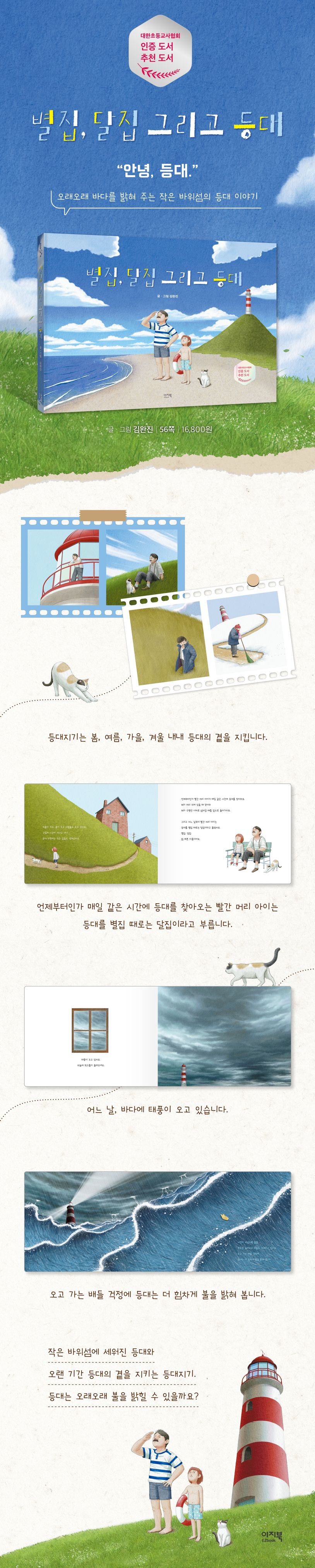 시간이 흘러도 꿋꿋하게 자신의 자리에서 빛을 밝히는 존재, 바다의 든든한 버팀목이 되어 주는 등대를 통해 작가는 우리도 누군가에게 그런 존재가 될 수 있다는 메시지를 전한다. 사계절을 지내는 작은 바위섬의 풍경을 보다 보면 마음속 깊은 울림과 잔잔한 위로를 받게 된다. 긴 여운과 따뜻함을 안겨주는 그림책 『별집, 달집 그리고 등대』가 독자와 만날 준비를 마쳤다.