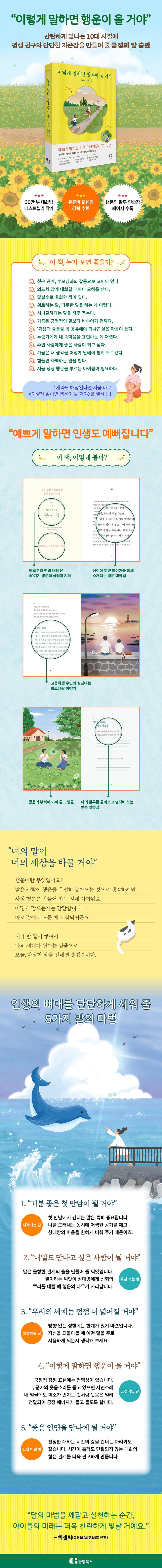 “어떤말은그사람의잠재된세계까지열어준단다.”자존감을형성하는10대시기에필요한긍정언어습관“요즘아이와대화가잘안돼요.”“무슨생각을하는지도무지모르겠어요.”“조금만예쁘게말해도좋을텐데….”사춘기를지나변화해가는아이를보고많은부모가말한다.전과표정이달라지고,말투는거칠어졌다고.10대는인생에서가장빠른변화가일어나는동시에평생돌아오지않을순수함과가능성으로가득한시기다.그변화와성장을주도하는것은다름아닌‘말’이다.어떻게말하느냐에따라성장의방향이달라지며,말로일어난변화는한사람의인생을바꿀만큼삶에지대한영향을미친다.다정한말,명쾌한말에익숙한아이는주변사람들과원활한관계와소통을유지하는자신의모습에서성취감을느끼고자존감도단단해진다.반면차가운말,모호한말에익숙한아이는인간관계에서쉽게오해를사고자신을믿지못하며작은꾸중에도쉽게무너진다.자존감은마치건물의뼈대를세우듯어린시절부터차곡차곡튼튼하게쌓아야한다.말의힘을인지하면좋은인간관계를형성하고위로와공감을주고받을수있는힘이생긴다.그런아이는인생의풍파가찾아와도쉽게좌절하지않는어른으로자란다.삶의뼈대를단단하게할청소년시기에반드시긍정언어습관과마인드셋을길러야하는이유다.“말은행운을담는그릇이자관계의다리란다.”경이로운자연으로부터배우는40가지삶의지혜《이렇게말하면행운이올거야》는말투의힘을체감한아빠와딸이함께쓴특별한힐링에세이다.수년간대화법과말투를연구하며30만부가넘는대화법베스트셀러를쓴김범준작가의조언,그의딸고등학생김수민작가의생생하고도솔직한학교생활이담긴이책은청소년들에게스스로를돌보고관계를지속하는언어의힘과삶의태도를가르쳐준다.이책은‘어떻게말해야하는가’를넘어서‘어떻게살아야하는가’에대한이야기다.이이야기는예로부터행운의상징으로알려진40가지자연물에대한소개로시작해,자연에서배울수있는삶에대한통찰로이어진다.1만개당1개꼴로존재하는네잎클로버처럼특별한관계를만드는말,일곱빛깔이라더욱아름다운무지개처럼다름을포용하는말,수천만세월을품은호박석처럼추억을만드는말,강풍에부러지지않도록몸을낮추는대나무처럼단단하면서유연한말등자연이알려주는지혜에귀기울이다보면아이의머릿속에는다정하고도힘있는말들이가득해진다.그과정에서기쁨과슬픔을표현하는법에익숙해지고,재능과가치를발견하는격려를스스로에게도해줄수있는사람이되어간다.말이란이처럼인생을건강하게가꿔가는데지대한영향을미친다.“어둠속에서도너의말이너를더욱빛나게할거야.”불안과후회속을걷는10대들에게전하는다정한위로이책은말이바뀌면내면의태도,타인과의관계,미래를대하는자세까지달라질수있다는사실을보여준다.지금아이에게필요한것은정답과도같은잔소리가아닌,따뜻한말한마디일지모른다.부모라면누구나아이의마음이다치지않기를바라지만그바람을어떻게전할수있을지몰라말조차삼킬때가많다.이책은그런순간,어떻게말해야서로의마음에진심이닿을수있는지를알려준다.친구관계에서상처받고가족과의거리로고민하는아이들에게이책은말한다.어둠속에서도너의말이너를더욱빛나게할거라고.너의다정한말들이지친마음을회복시켜줄것이라고.말한마디의힘을믿는모든부모와아이들에게건네는다정한선물이될것이다.추천사말한마디로마음을,사람을,그리고행운을끌어당깁니다.가장반짝이는시기,그행운의마법을하루라도빨리경험한다면얼마나많은가능성을품게될까요?이책은행복과행운의비밀을따뜻한언어로활용하기쉽게풀어냈습니다.‘말’에대한이야기지만,결국스스로를믿고세상과건강하게연결되는방법을알려주는반가운안내서입니다.말의마법을깨닫고실천하는순간,더욱찬란히빛날아이들의미래를떠올리면절로미소가지어집니다.-희렌최|커뮤니케이션전문가,66만유튜브〈희렌최널〉운영자