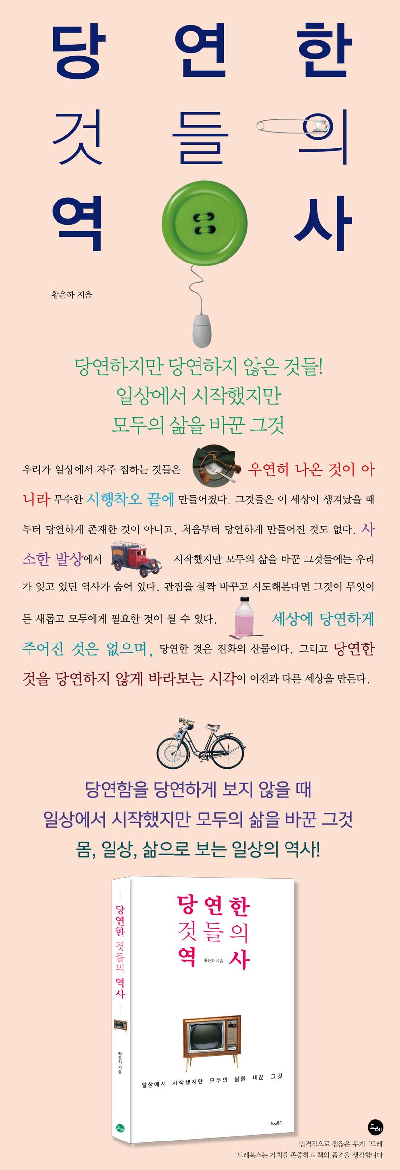 우리가 일상에서 당연하게 사용하는 것들. 하지만 그것들은 나무나 일상적이어서 그것이 어떻게 만들어지고 우리 곁에 왔는지 잊곤 한다. 주변에서 흔하게 볼 수 있는 물건들이어서 당연하게 생각하지만, 알고 보면 그것들에는 저마다 사연을 담고 있고 수많은 시행착오를 거쳐 우리 곁에 자리한다. 이 책은 너무도 당연해진 물건들 또는 장소, 개념들의 탄생과 변천 과정, 만들어진 에피소드를 담았다.
