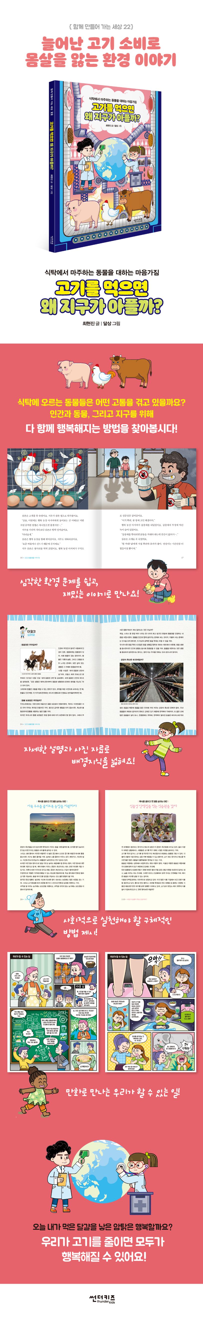 《고기를 먹으면 왜 지구가 아플까?》는 결국 늘어난 고기 소비는 인간에게, 그리고 지구에 새로운 재앙을 가져오고 있다고 말하고 있어요. 우리가 고기를 먹으면 어떤 일들이 벌어지는지, 다섯 가지 이야기를 만나 보세요.