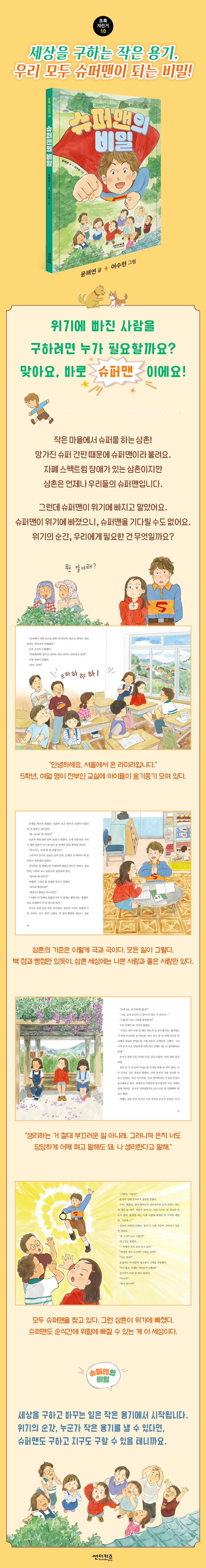 누구에게나 슈퍼맨이 필요한 순간이 찾아와요. 하지만 영화 속 하늘을 나는 슈퍼맨과 거미줄을 치며 건물 사이를 나는 스파이더맨을 기다리고 있을 수는 없어요. 그럴 때 우리가 직접 슈퍼맨이 되는 거예요. 《슈퍼맨의 비밀》 속 든든한 슈퍼맨 삼촌과 여덟 명의 순수한 친구들과 함께한다면 생각보다 쉬운 일이랍니다.