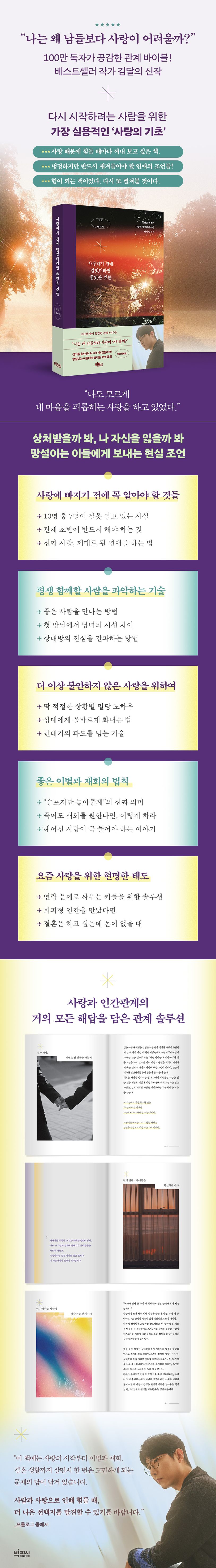 많은 사람이 자기 자신을 제대로 알기도 전에 상대를 운명처럼 받아들이고, 성급하게 사랑을 시작한다. 상대방의 행동과 감정에 휘둘리며 불안을 느끼지만, 문제의 본질을 파악하지 못한 채 같은 실수를 반복한다. 어떻게 하면 고민과 망설임을 줄이고 아프지 않게 사랑할 수 있을까?
