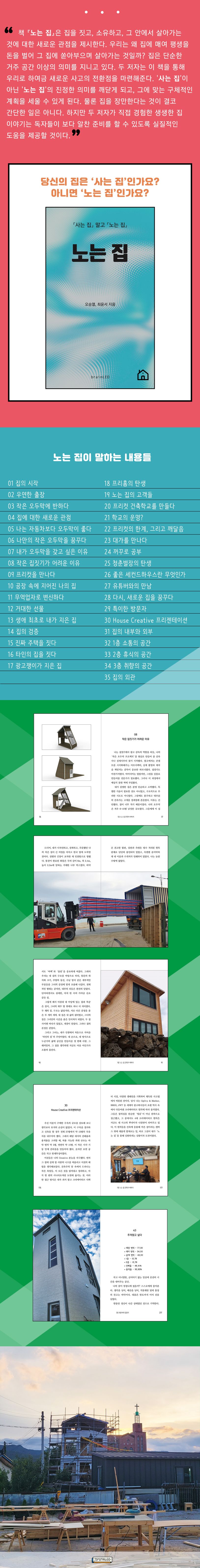 그 질문 하나가 내 삶과 내 일을 바꾸었다. 그때부터 나는 타인의 집을 함께 짓는 일을 시작했다. 그들의 이야기를 듣고, 그들의 공간을 디자인했다. 또한 이런 집을 짓는 방법을 더 많은 사람들에게 알려주기 위해 직접 집짓기 학교도 열었다. 함께 땅을 고르고, 자재를 손에 들고, 망치를 들며 한 채씩 집을 올렸다. 사람들은 말했다.