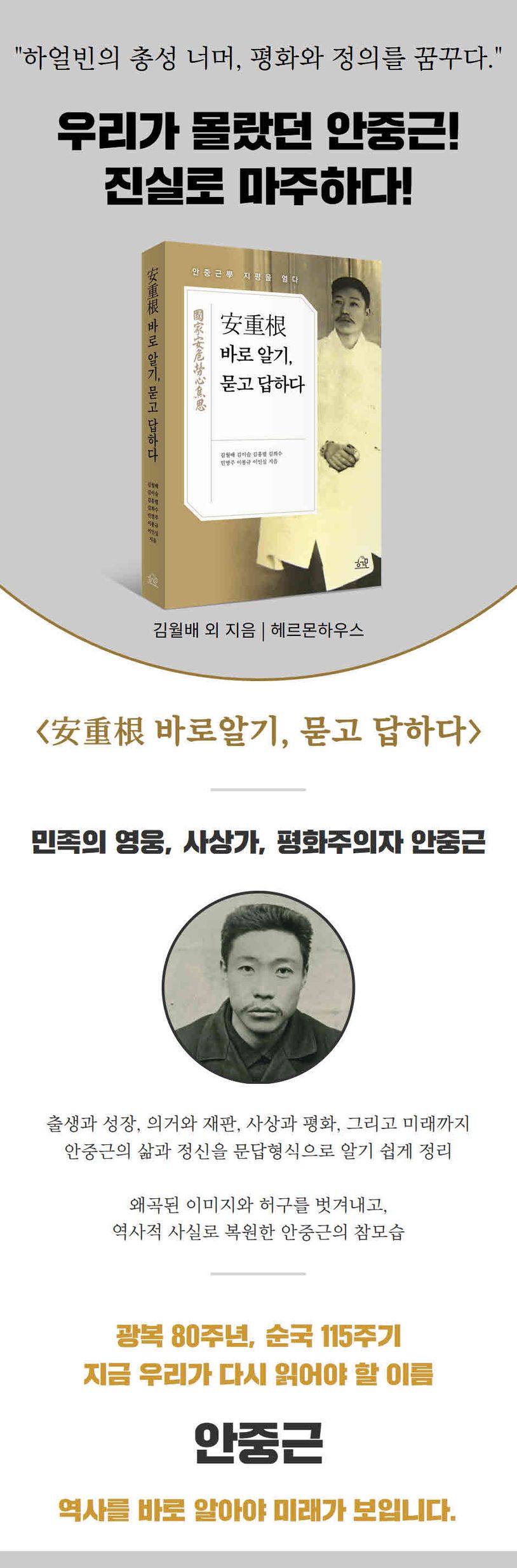 안중근 의사의 위대한 정신과 사상이 이 책을 통해 더 많은 이들에게 제대로 전해지고, 오래도록 계승되기를 바랍니다.